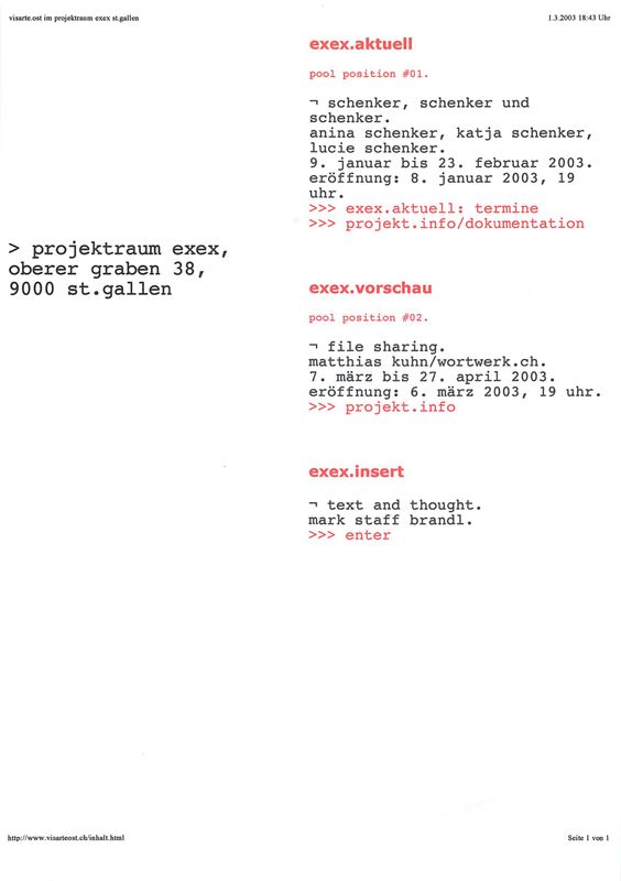 pool position #01: schenker, schenker und schenker - Exex St.Gallen, 2003